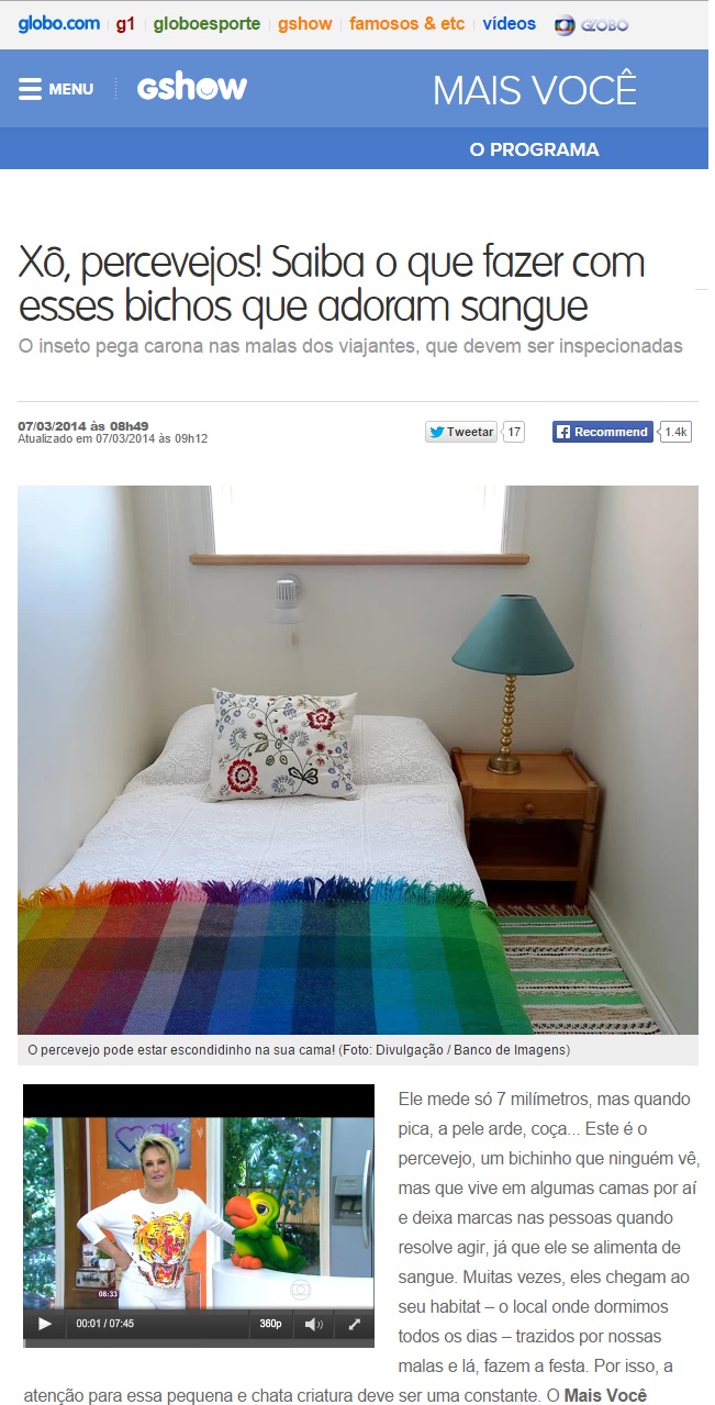 O Pograma da GLOBO – Mais Você ensinou maneiras de se livrar do temido percevejo;
