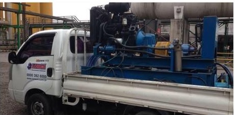 caminhão equipado com reservatório de água, sendo alta pressão ou vazão, dependendo do tipo de obstrução, acompanhado de acessórios |