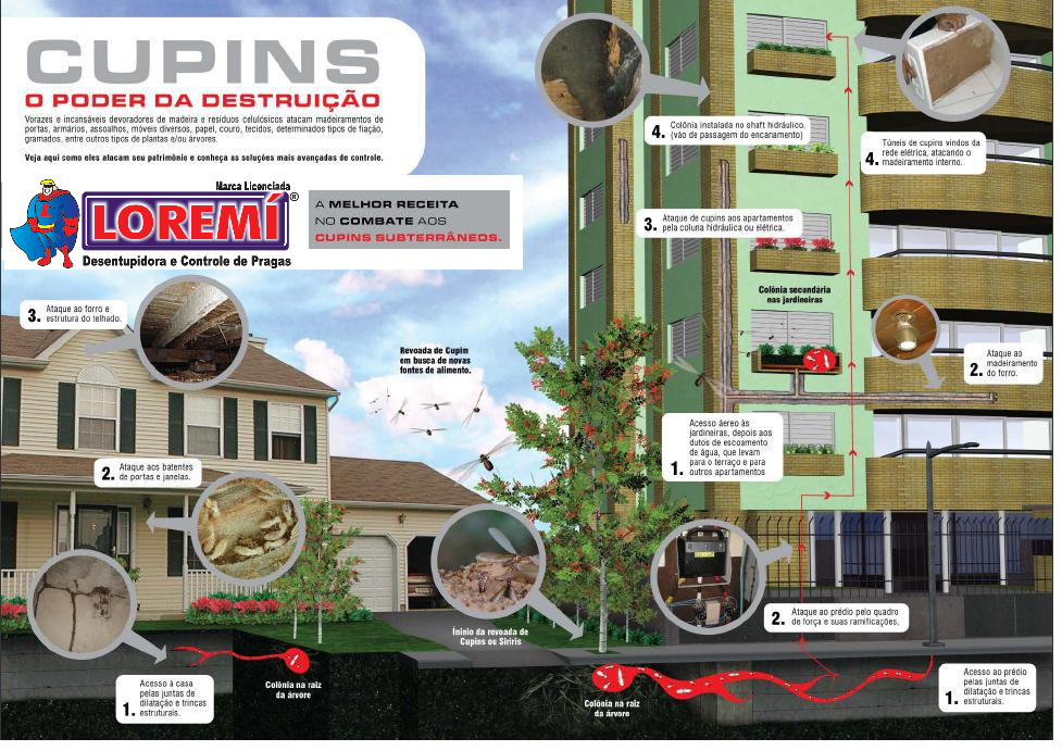 Mais imóveis seguros não cobre danos causados ??por cupins. O Plano de Cobertura cupim subterrâneo Loremi.